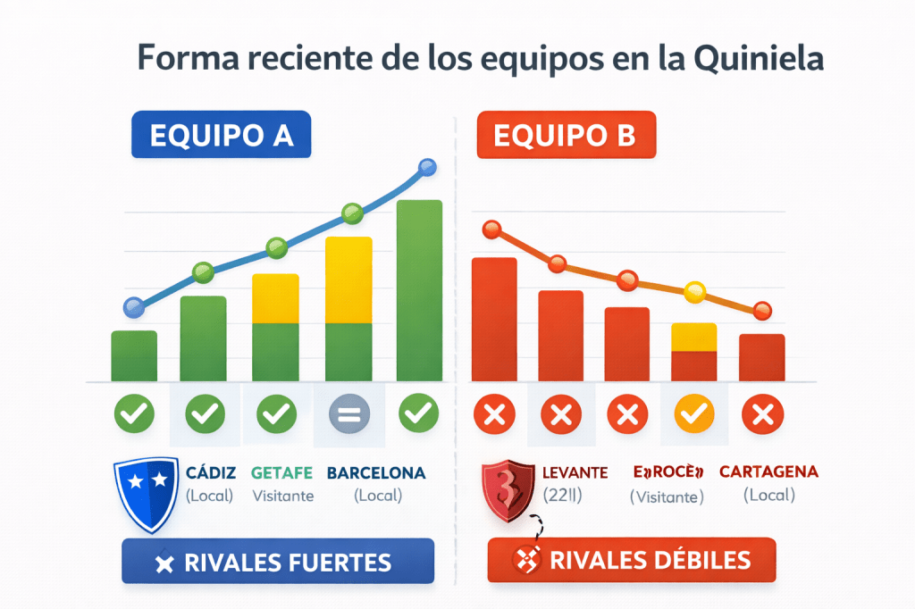 La forma reciente es uno de los factores más utilizados en la Quiniela y, paradójicamente, uno de los peor interpretados. Muchos jugadores se limitan a mirar los últimos resultados y sacar conclusiones rápidas: “este equipo viene bien” o “este equipo está en mala racha”. El problema es que la forma no se entiende solo contando victorias.