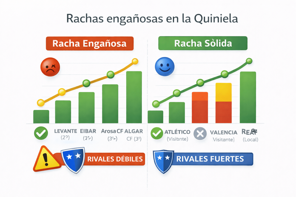 En la Quiniela, las rachas largas suelen inflar la percepción de favoritismo y provocar partidos trampa. Cuando todo el mundo ve una racha y actúa igual, el valor desaparece.