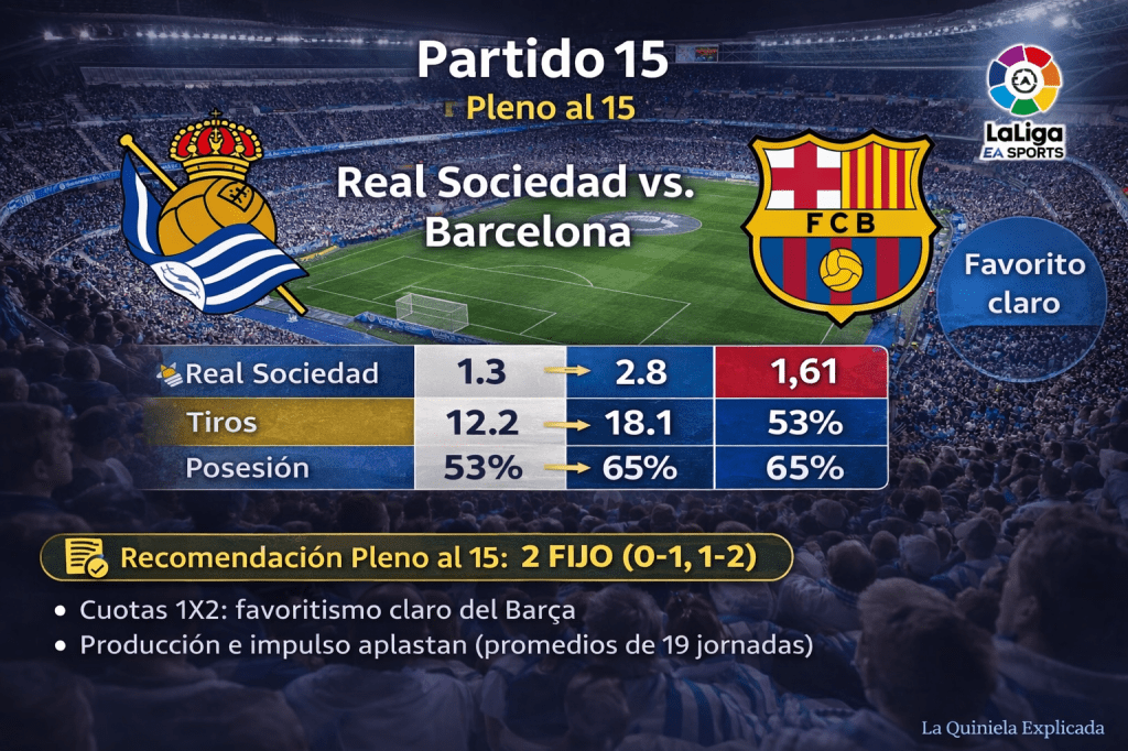 Partido 15: Real Sociedad–Barcelona = 2 (Pleno: 0-1 / 1-2 como escenarios)